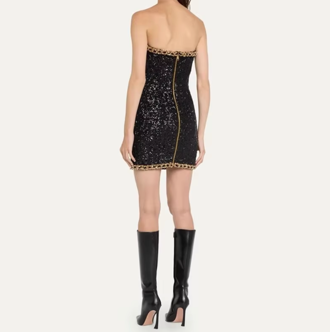 Make a bold entrance with the Giselle Strapless Dress, a captivating piece designed to showcase your best features. This sequin-embellished mini dress, featuring a structured bustier design, highlights your silhouette for an unforgettable look. Whether you're headed to a special event or a night on the town, the Giselle dress guarantees all eyes on you.