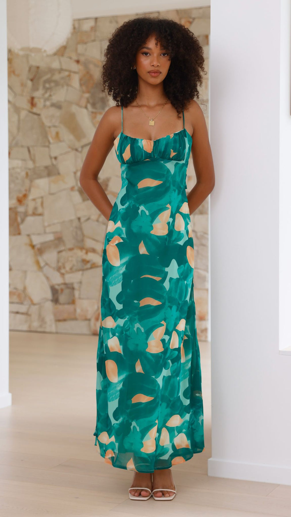 The Margie Midi Dress in Green Print is soft, feminine, and made for sunshine-filled days. With delicate adjustable straps, a softly padded gathered bust, and a unique open back with a twisted strap detail, it’s designed to flatter from every angle. Lightweight and breezy, this floral favorite is perfect for garden parties, summer getaways, or romantic weekends.