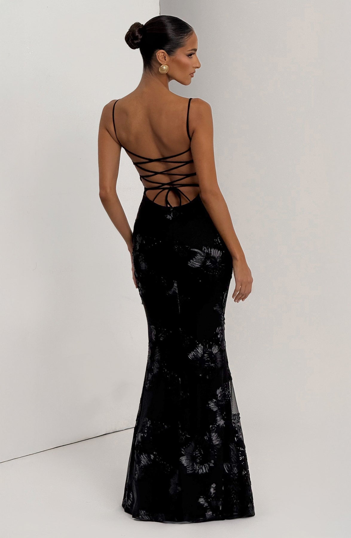 Command attention in the Salma Maxi Dress, a stunning fusion of sophistication and allure. This sleek black gown features a figure-enhancing silhouette with delicate thin straps and a sculpted sweetheart neckline that beautifully frames the décolletage. Intricate tonal floral detailing adds depth and texture, catching the light with subtle elegance. Designed to move gracefully with every step, the Salma Maxi Dress embodies effortless glamour—perfect for galas, formal evenings, or any occasion where you want to make an unforgettable impression.